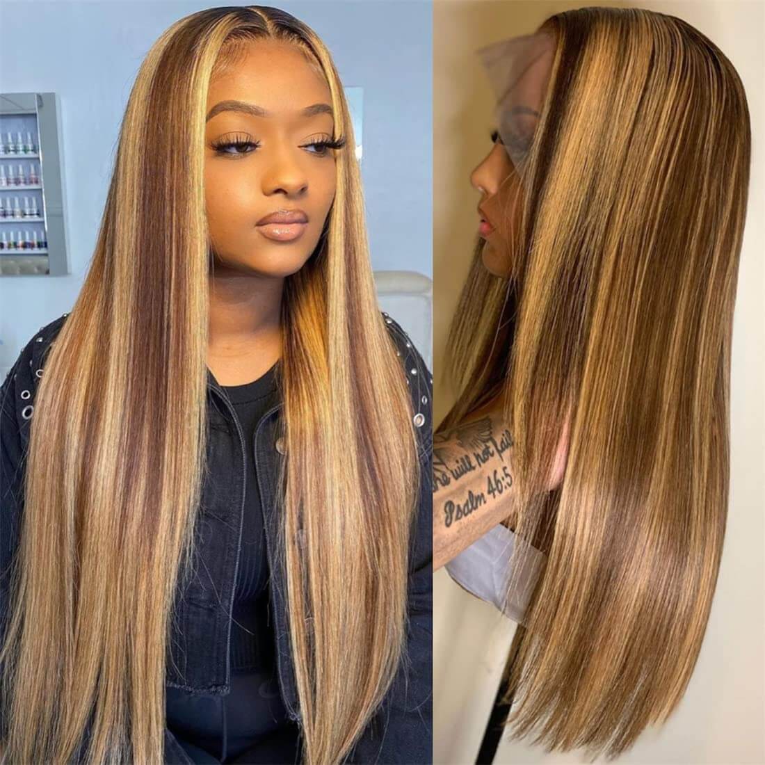 13x4 4/27 Paino Straight Hair Wigs Human Hair - 14A