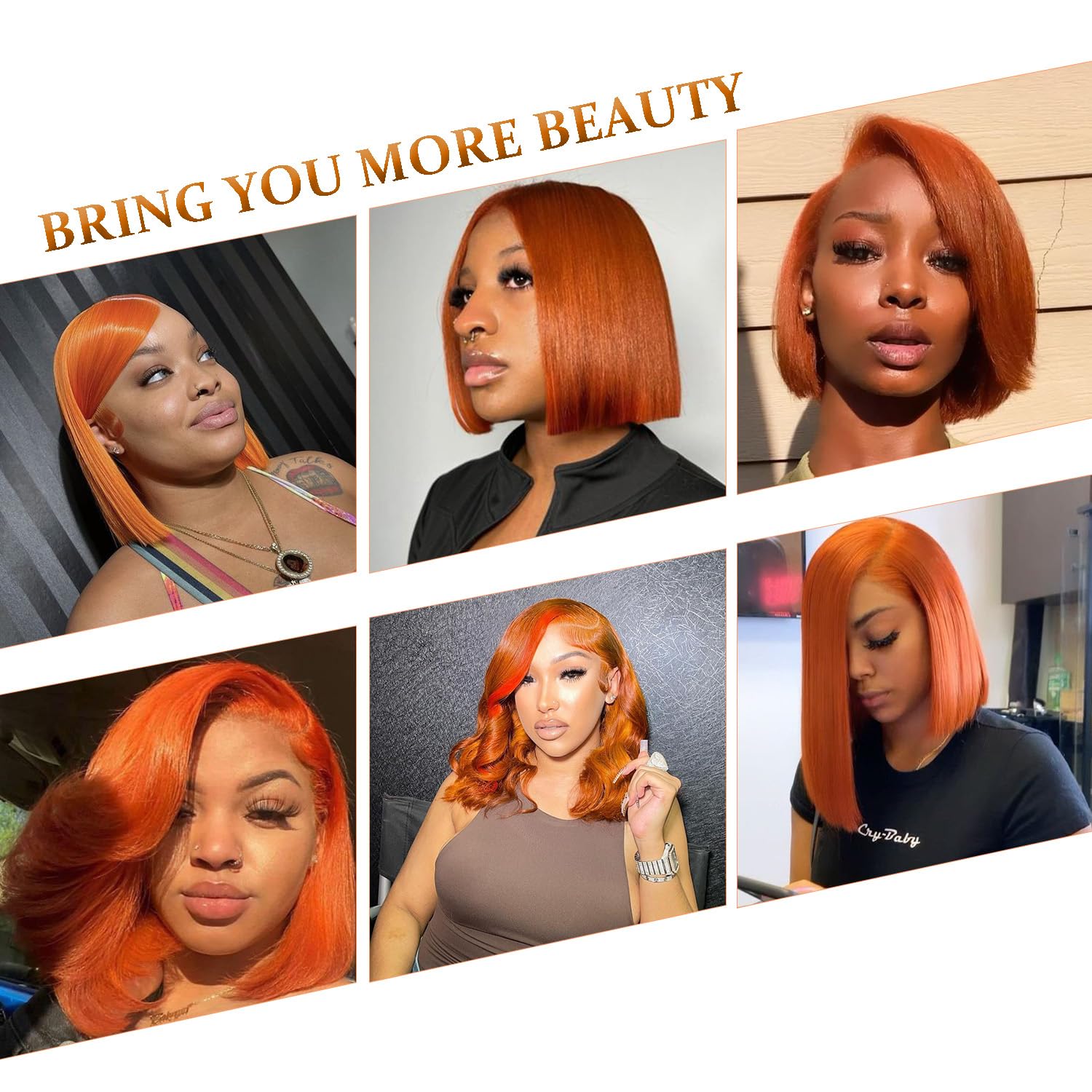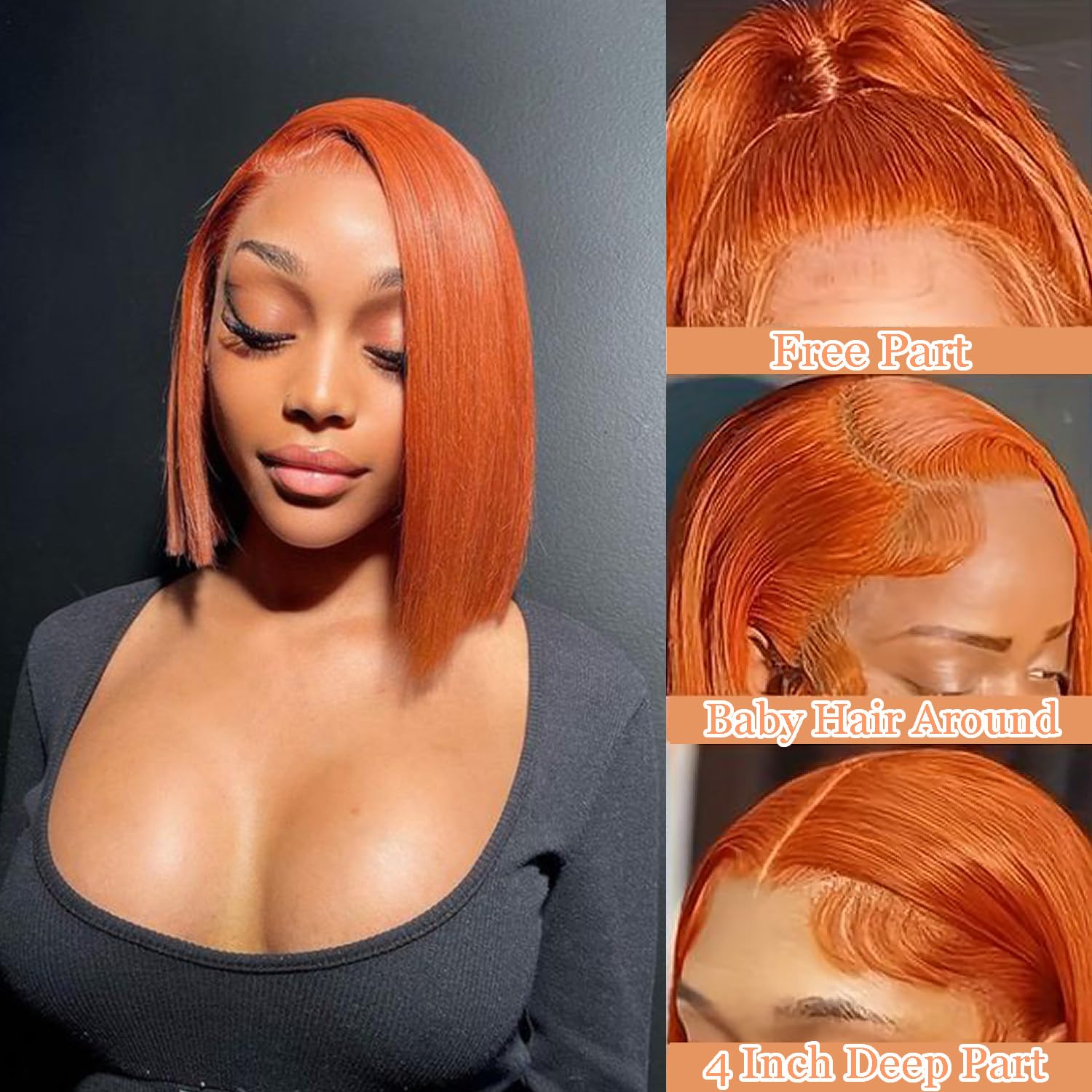 13x4 Ginger Orange Color 350# Straight Hair Bob Wigs Human Hair - 14A